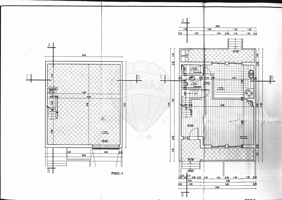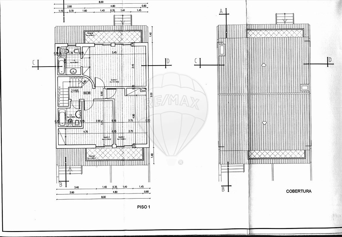 Área total do terreno: 184,00 m² Área de implantação do edifício: 80,00 m² Área bruta de construção: 120,00 m² Área bruta dependente: 20,00 m.