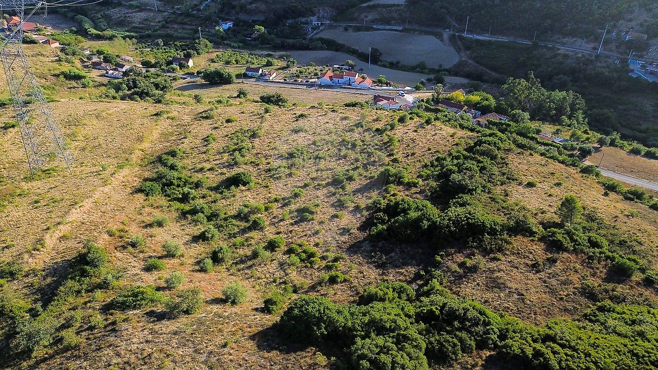 Este hectare e 600m outrora foi terra de cultivo, mas hoje está de campo, com alguma vegetação mediterrânea espontânea, à espera de alguém que aqui queira instalar um projeto agrícola