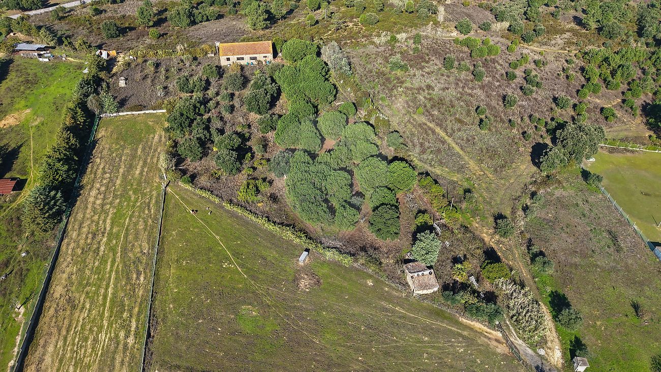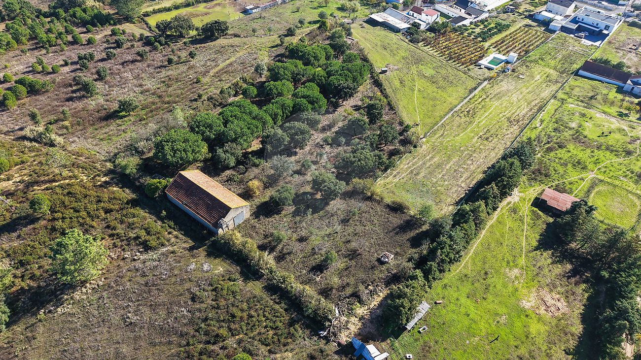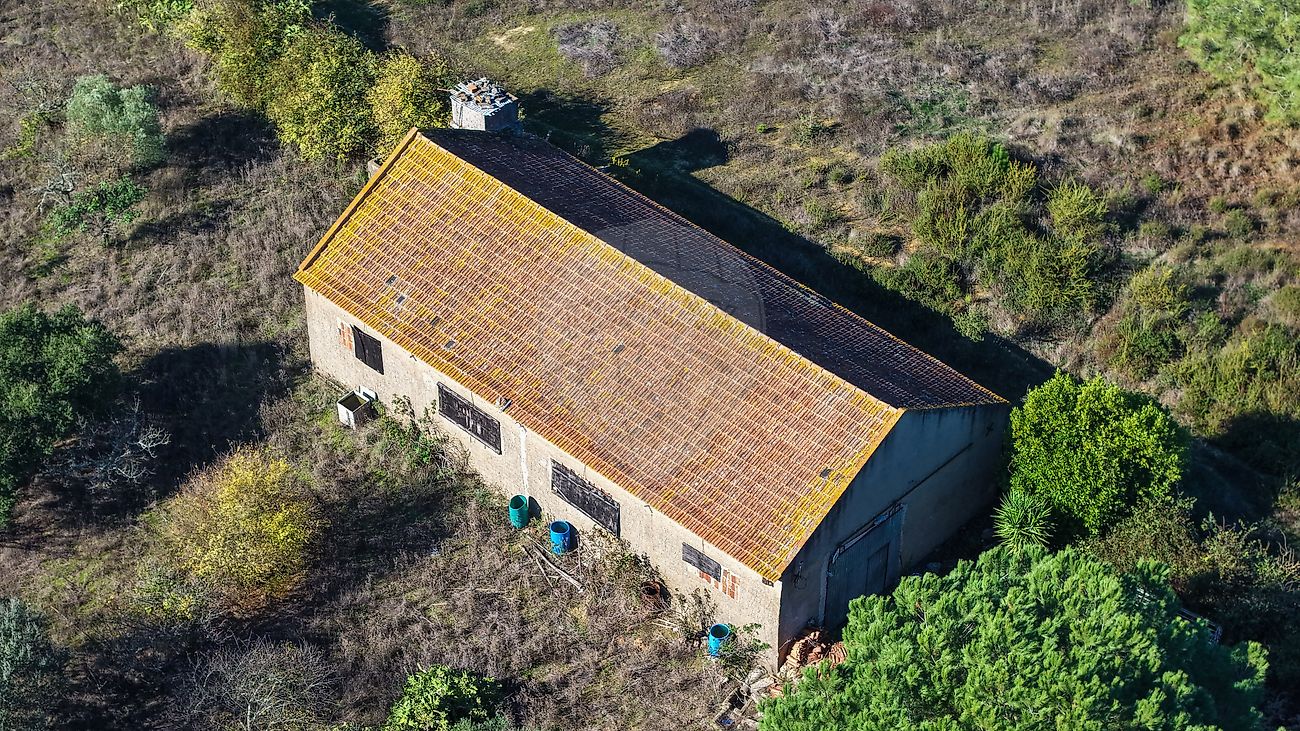 O terreno conta com duas casas de apoio agrícola, sendo uma delas de grande dimensão, ideal para armazenamento de equipamentos, criação de espaço de trabalho ou apoio a futuras atividades agrícolas.